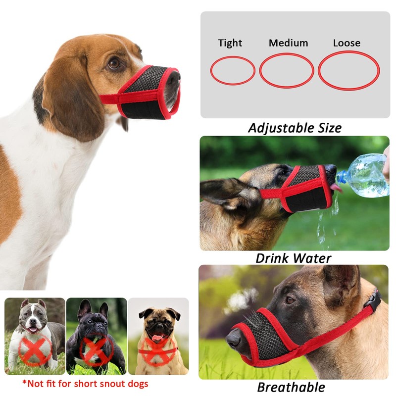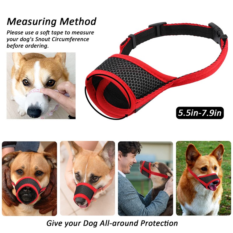 - Elastic and Easy to Adjust - M (14 - 20cm / 5.5 - 7.9"), for small dog to golden retriever, open the velcro, place this muzzle on your dog's muzzle, then for your dog Find the most comfortable angle, attach the Velcro and adjust the strap on the dog's head, close the buckle