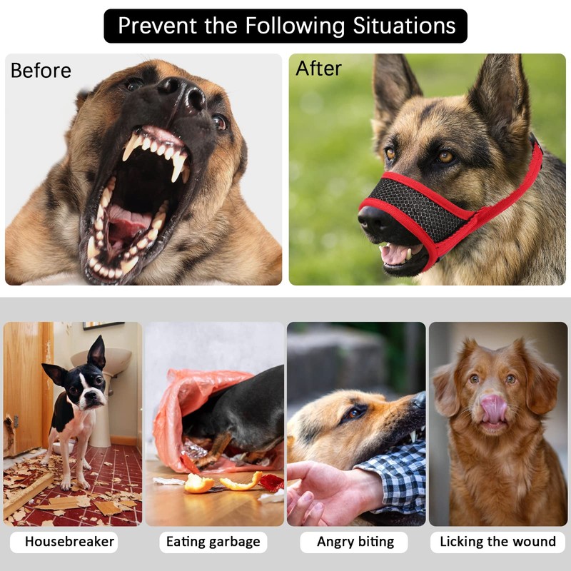 - Great Muzzle to Make your Dog Better! - Our dog muzzle can effectively stop barking and biting when walking outside. It can also help correct dog bad behaviors, put the dog muzzle on when unwanted chewing to help them calm down, and remove it after minutes to put right their behaviors