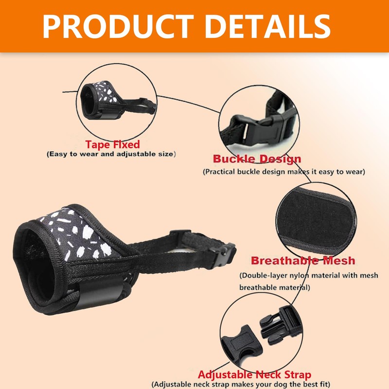 - COMFORTABLE WEAR & BREATHABILITY The thoughtful design of the muzzle allows your dog to pant and drink while wearing it. The breathable mesh material ensures good air circulation, which makes wearing comfortable even during prolonged use. The fabric muzzle for small dogs in size XS and the colour black.