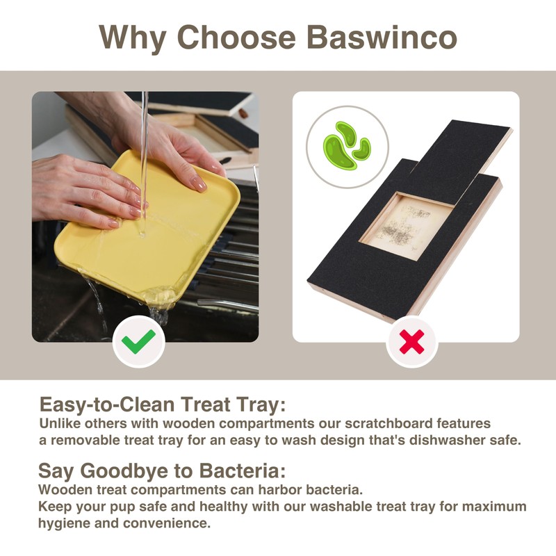 - Easy-to-Clean Treat Tray: The removable, dishwasher-safe treat tray makes cleaning effortless; just remove, rinse, or place in the dishwasher to wash away residue, keeping the scratch pad for dogs fresh and ready for your dog’s next grooming session