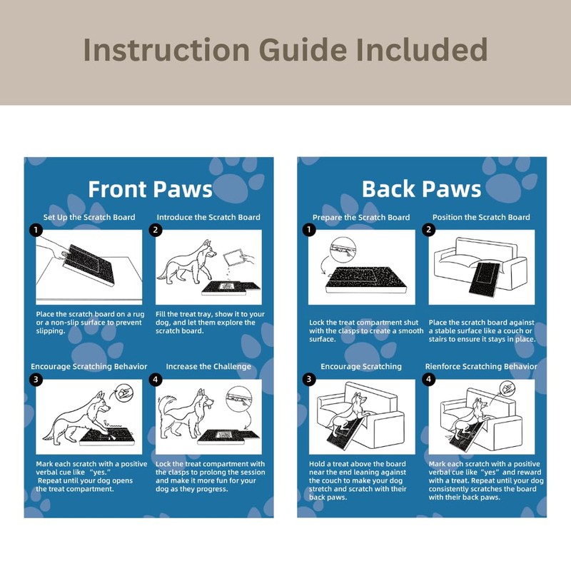 - Front and Back Paw Filing: This dog treat nail file board efficiently files both front and back paws. Our step-by-step instructions guide ensures easy and effective use of this dog nail filer. Keep your dog's nails in check with this convenient and user-friendly tool, designed for all-around paw care