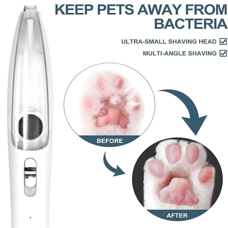 Dog Paw Trimmer for Grooming - Quiet, Rechargeable Pet Paw Trimmer for Dogs and Cats with Light, Hair Suction, Dual-Speed Ceramic Blades - Safe & Precise Cat Paw Trimmer for Small Areas