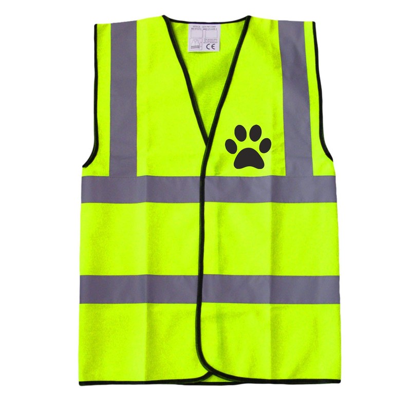 Dog Paw Yellow Hi Vis Viz Safety Vest Waistcoat For Humans Reflective High Visibility, Dog Walker, EN471 BS, Medium