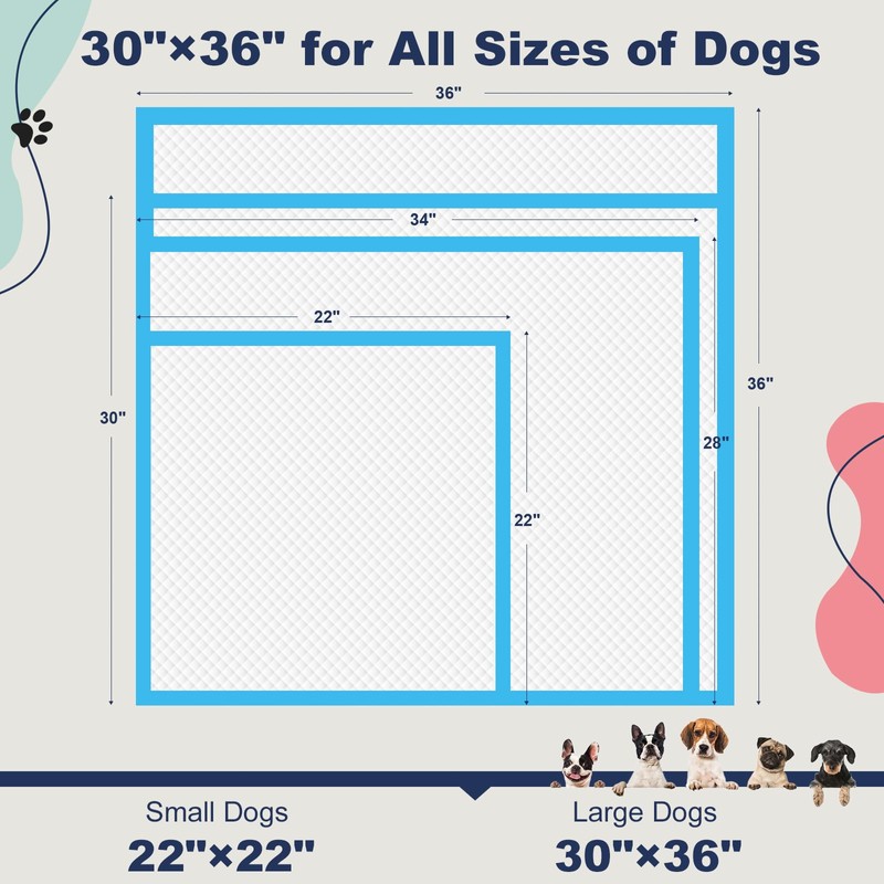 - 【EXTRA LARGE SIZE】With these XXL pet pee pads 30" × 36", you won't need to replace it very frequently. The pee pads are also suitable for cats, rabbits, chickens, and other pets, widely used in pet toilet training, sick pet assistance, dog car travel, and more