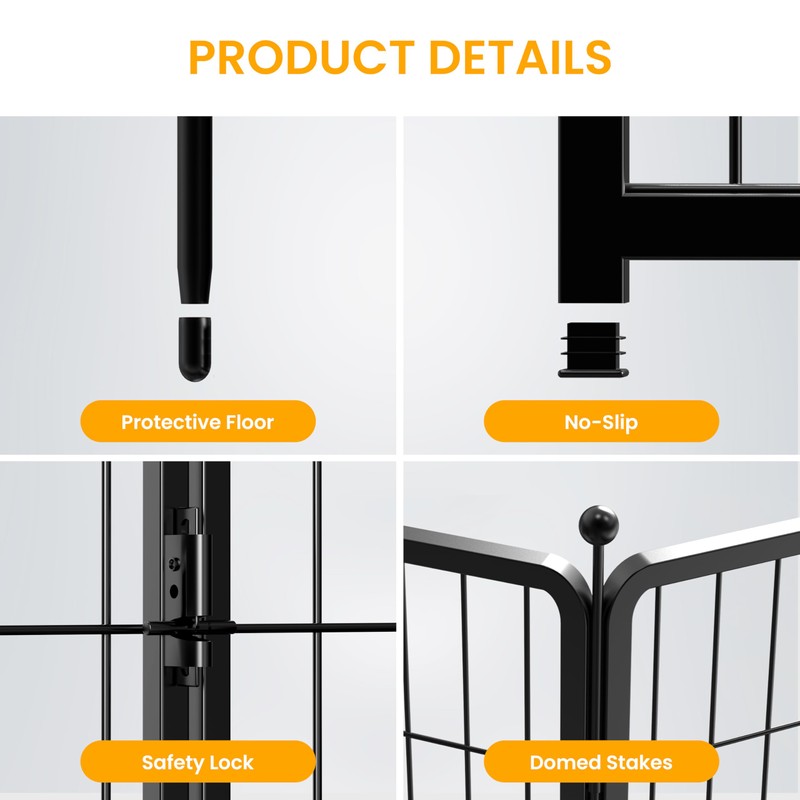 - 【Safety Design】: The upgraded design of the ground stakes with rounded tops provides protection for your pet's paws, ensuring more robust stability even when the pet is close. You can truly trust that your pet can move around safely within the enclosure.