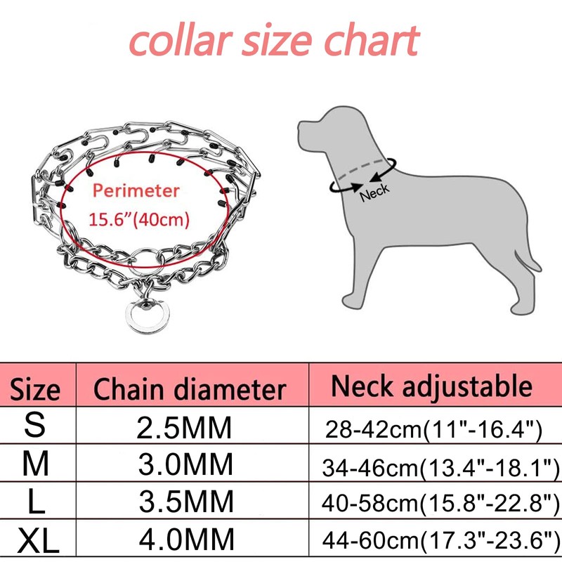 - 【ADJUSTABLE SIZE】---The perimeter of the dog training collar can be adjusted, suitable for small dogs, medium dogs and large dogs. You can add or remove individual chains on the dog pinch collar to fit your dog's neck as need.Please adjust with tools such as pliers.