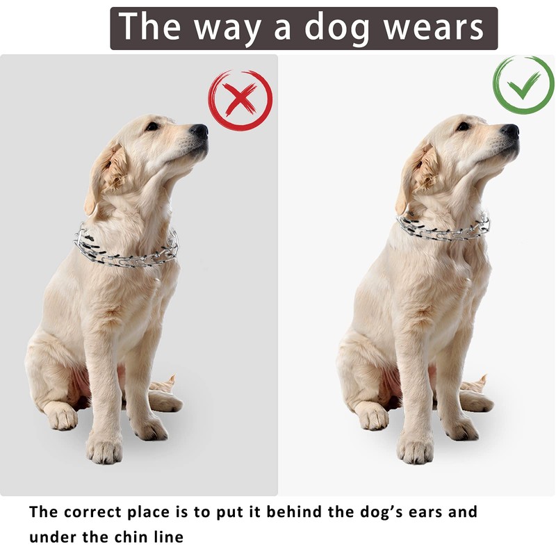 - 【SAFE AND EFFECTVE】--- Dog training collar place even pressure on the neck sides and not on the trachea, prong ends of the dog choke collar are protected by rubber tips that can prevent harms to your dogs neck.