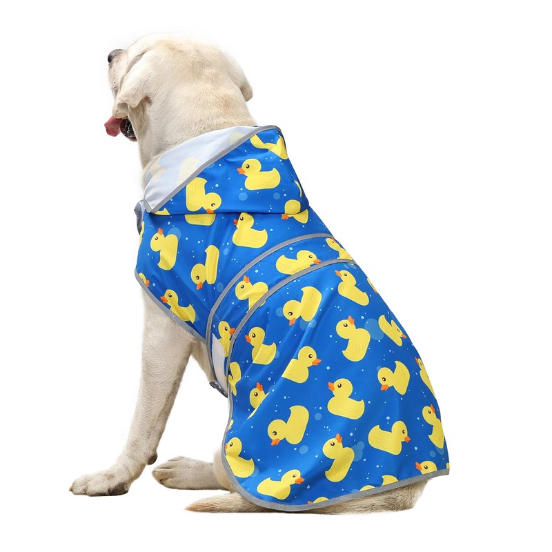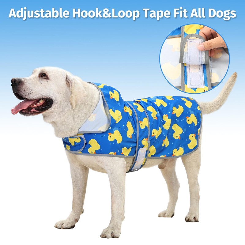 Dog Raincoat with Hood and Leash Hole, Adjustable Belly Strap, Reflective Strips, Lightweight Slicker Poncho Rain Jacket Coat for Small Medium Large Dogs and Puppies (A. Ducks, X-Large)