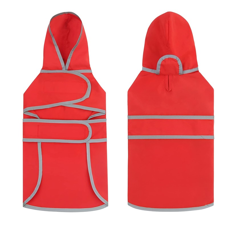 - Reflective Design: Our hooded dog poncho design with reflective safety stripes around the dog rain clothes, ensures your pets can be seen at night or in the dark. Doggie rain gear built-in dog leash hole for doggie collar leash connection on the back.