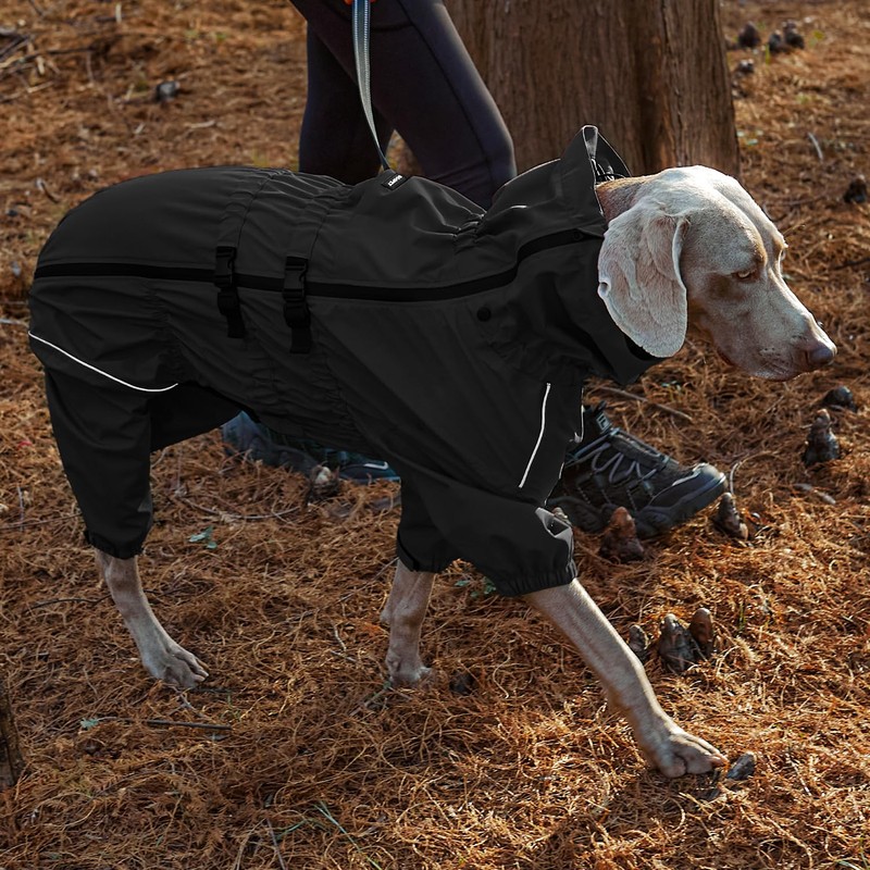 - 【Comprehensive Protection】- The dog raincoat is adhered with waterproof tape and is designed with four legs fully wrapped to provide maximum protection for your dog during outdoor adventures. The elasticized wrapped edges are able to completely wrap around your dog's body while allowing them to run around uninhibited