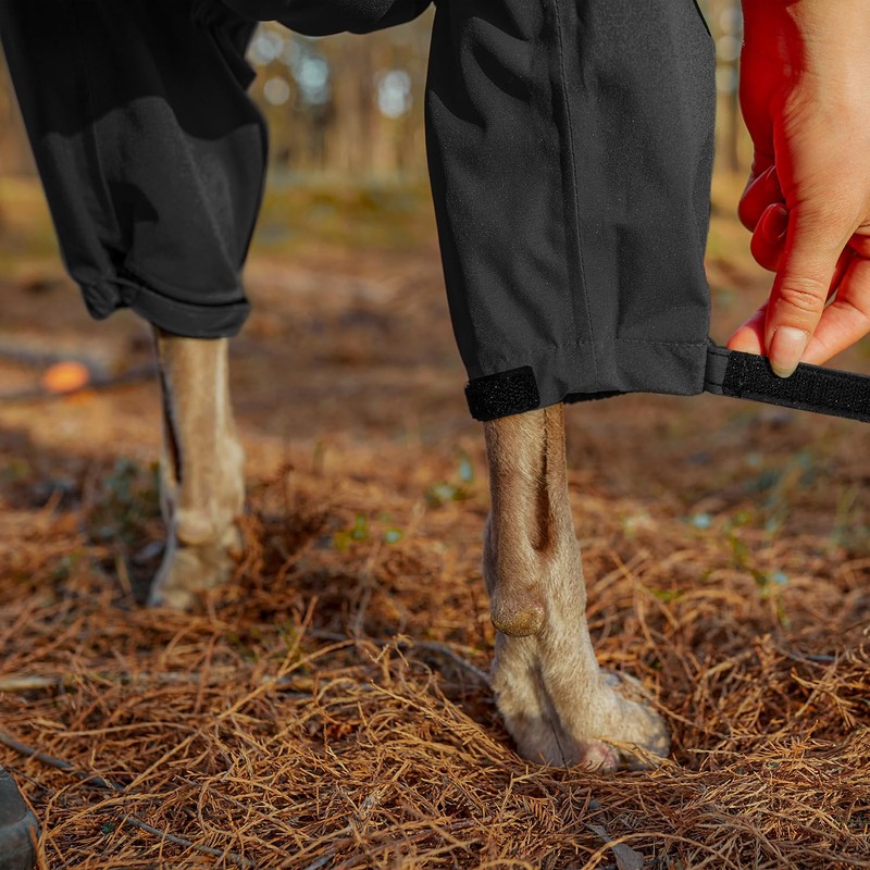 - 【Convenient Design】- The waterproof jacket has built-in hauling holes for easy hauling during outdoor activities. Velcro leg openings, adjustable elastic cuffs, and 15 wider elastic belts with buckles and sliders on the belly will not restrict your dog's movement