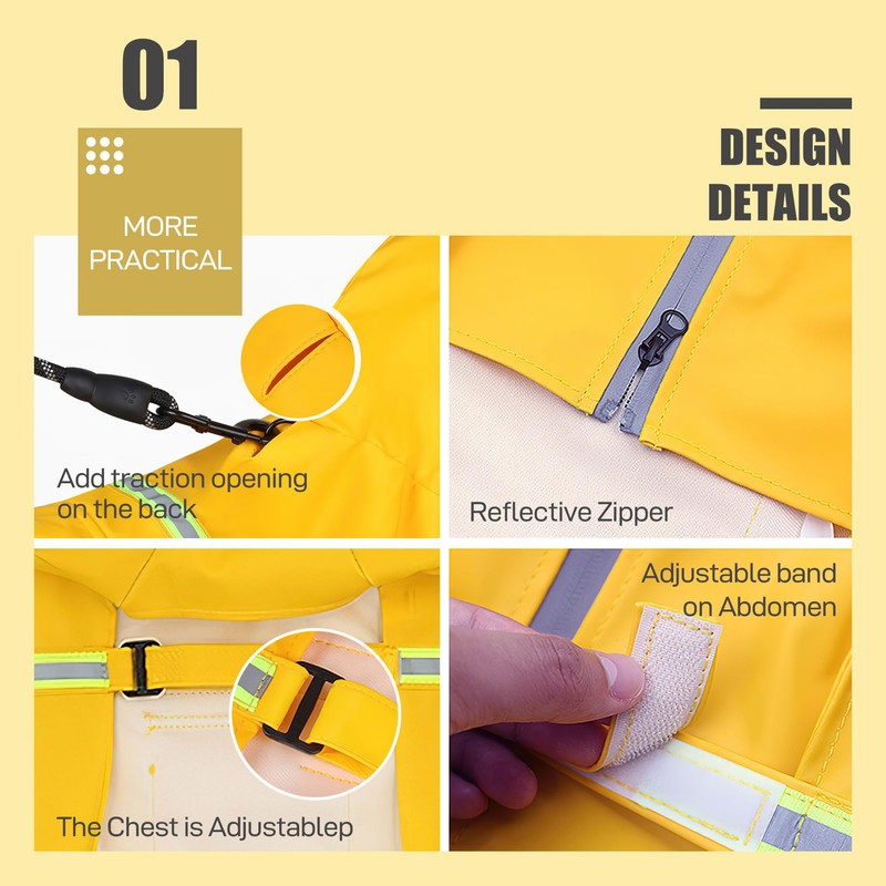 - Stay Visible and Safe :Dog raincoat features super bright reflective strips on the back, hood, and bags, ensuring high visibility and safety for your dog at night. You can easily spot your dog when walking in low light conditions.