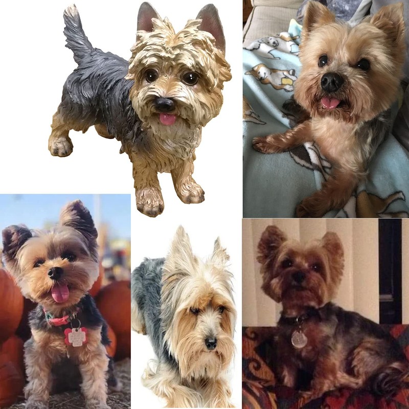 - Material: Resin .Color: yellow and gray.Yorkshire Terrier Statue Home or Garden Decoration,perfect for display indoors or out.