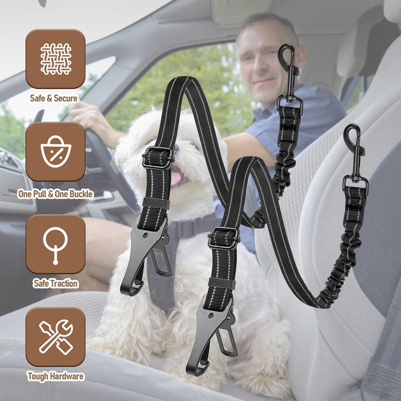 - [Adjustable Length] The adjustable pet seat belt ensures secure fit for your dog's comfort. Whether you have a small, medium, or large pet, it ensures a snug fit without causing any pressure.