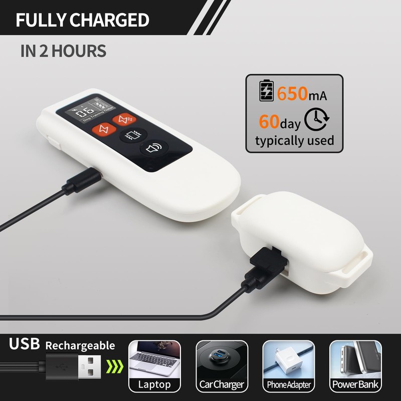 • Rechargeable & Long-Lasting Battery: Both the collar and remote are rechargeable, offering extended battery life to support uninterrupted training sessions.