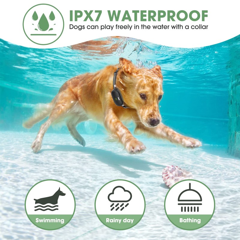 - [Waterproof Receiver & Comfortable Collar] The IPX7 waterproof collar is convenient for dogs playing around a pool or in the rain freely. The e collar strap length can be adjusted, fitting dogs weighing over 10 pounds with neck measurements ranging from 8 to 24.4 inches!