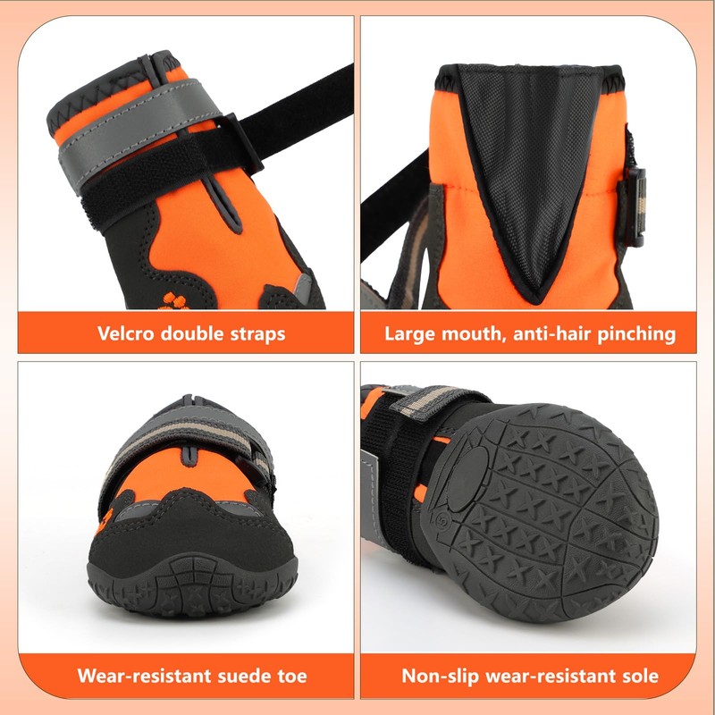- [360°ANTI-SLIP BOOTS] - The 360° anti-slip design of the shoe opening prevents the dog shoes from slipping off your dog's feet. The dog boots are very soft for dog's paws and durable for dog.