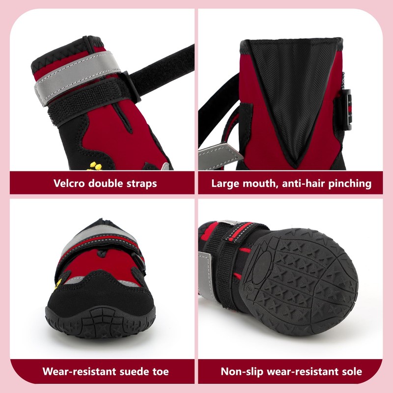 - [360°ANTI-SLIP BOOTS] - The 360° anti-slip design of the shoe opening prevents the dog shoes from slipping off your dog's feet. The dog boots are very soft for dog's paws and durable for dog.