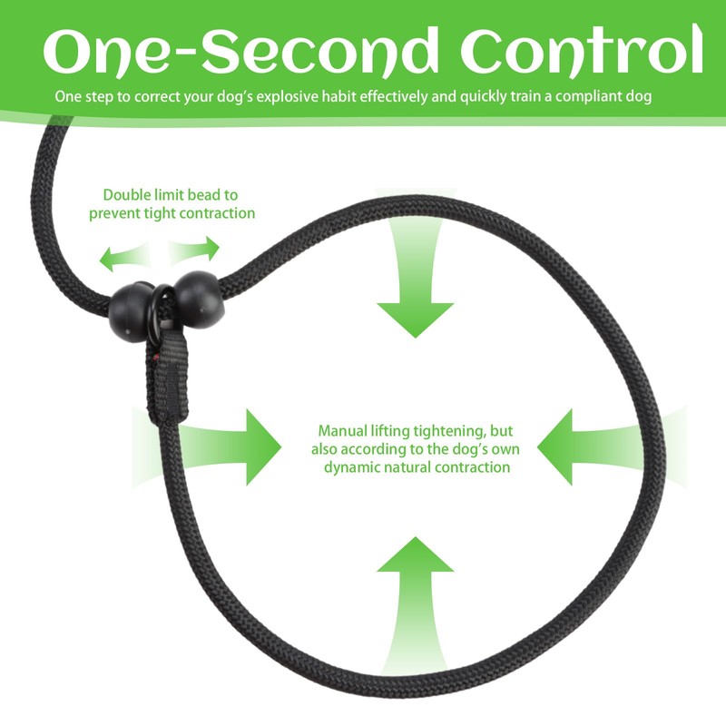 - Anti-Pull and Anti-Choking: The Anti-Pull dog leash slip has anti-explosion grip,can effectively prevent dogs from sudden explosions,and the slip lead dog leash simple and easy to put on and off, rope dog leads are designed with 2 stoppers(double limit beads) that can adjust to adjust dog's nech size, and the slip design provides quick and gentle adjustability,giving you more control over your dog.