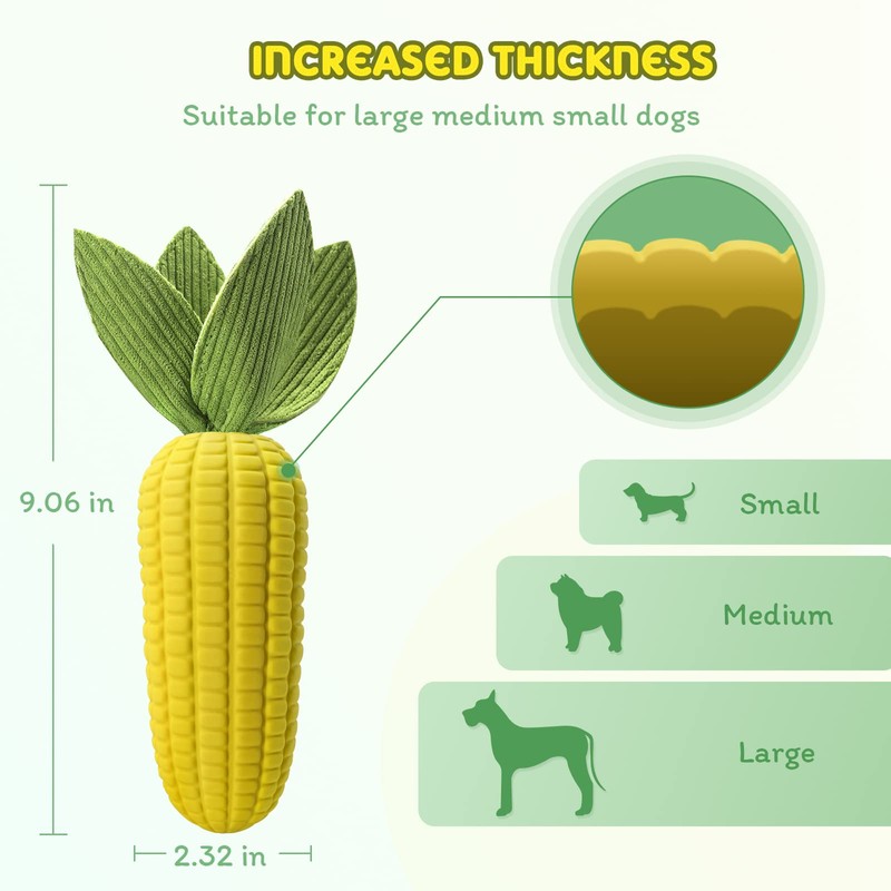 - Protect Dog Dental Health: We pay special attention to the health of dogs. The bumpy corn texture effectively cleans your dog's teeth and prevents the growth of tartar and plaque. Add toothpaste or a favorite food to dog toy to keep your dog's dental health while playing.