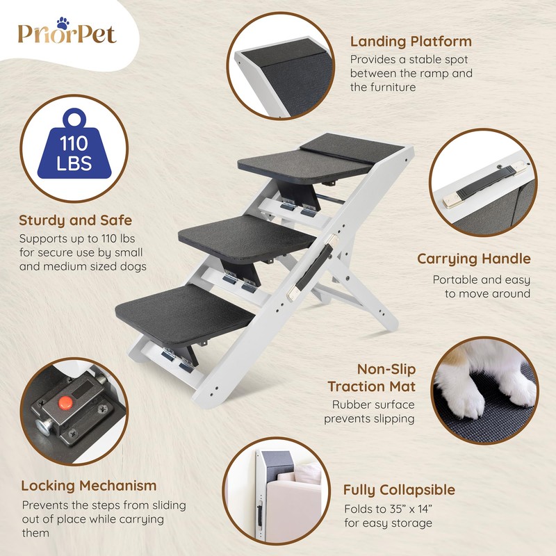 - EASY TO MOVE WITH RUBBER FEET: Lightweight and portable, these dog steps come with rubber feet that help prevent sliding, especially on wooden floors, keeping them securely in place.