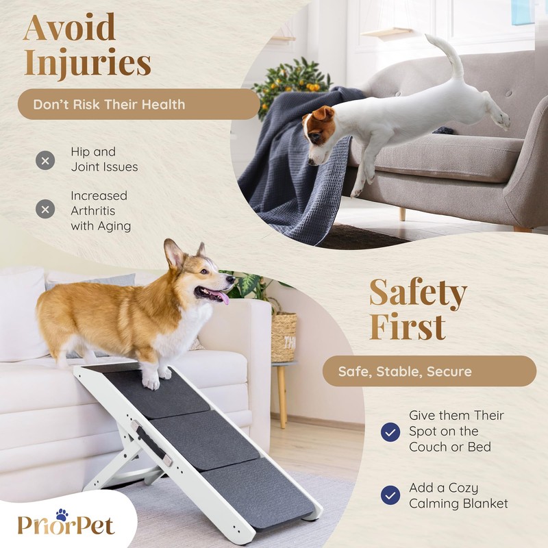 - HEIGHT ADJUSTABLE FROM 7 INCH TO 20 INCH: Customize the height of the dog ramp from 7” to 20” to perfectly match your couch or bed, ensuring comfort for small and large dogs, making these the ideal dog steps for small dogs or large dogs.