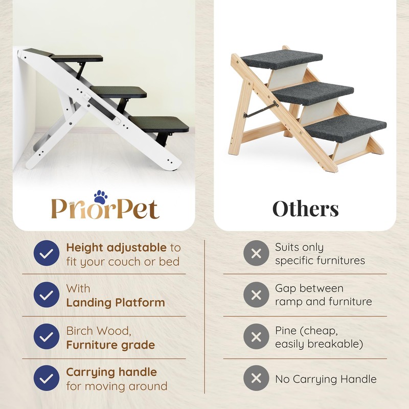 - SOLID BIRCHWOOD CONSTRUCTION WITH NATURAL FINISH: Crafted from premium solid birchwood, these pet steps are not only sturdy but also stylish, blending seamlessly into your home decor while providing reliable support for both small and large dogs.