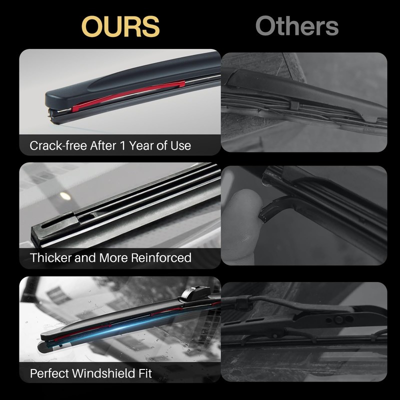 • 【Stylish Design, Premium Look】Tired of dull, all-black windshield wiper blades? Add a bold touch with our signature red-accented design—sleek, modern, and made to stand out. Whether you're pulling up to a car meet, parked on city streets, or just upgrading your daily vehicle, these car wipers blend performance with personality. Turn heads while staying road-ready. Style and clarity—why not have both?