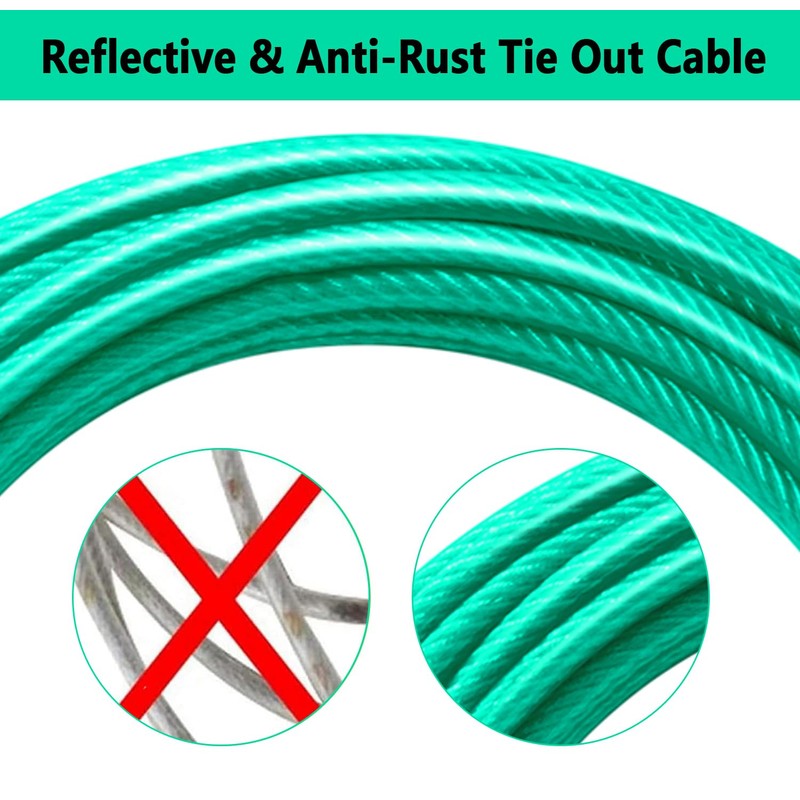 - Chew Proof Dog Leash: Durable Dog Tie-Out Cable Made with a strong steel wire core and chew-resistant transparent PVC coating, this dog tether is rust-proof and built to last. The secure locking carabiner ensures safety in any setting—whether in your yard, at a campsite, or during outdoor training.Its perfect as a long-line training leash or a fixed tie-out, giving your dog the freedom to explore while keeping them safely under control.