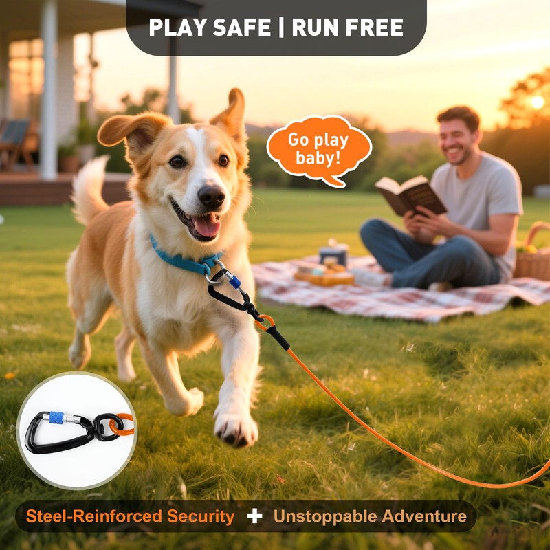 - Secure Locking Mechanism: The 360-degree swivel lock ensures no accidental openings, providing maximum security for your pets. The military-grade carabiner clip uses a screw-to-lock mechanism in just three steps, making it easy to install and use. The tangle-free design ensures safe and convenient playtime, even for the most energetic dogs
