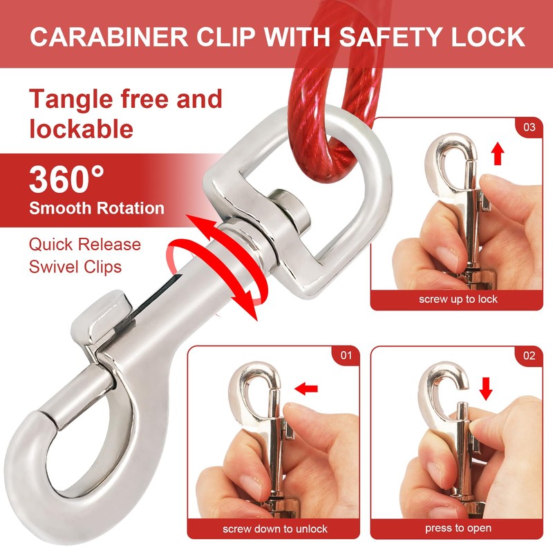 - 【 360° Rotating Design】Upgraded Locking Hook, The 360° rotating design keeps the cable stay tangle free no matter how many times the dog turns around.