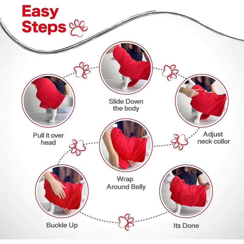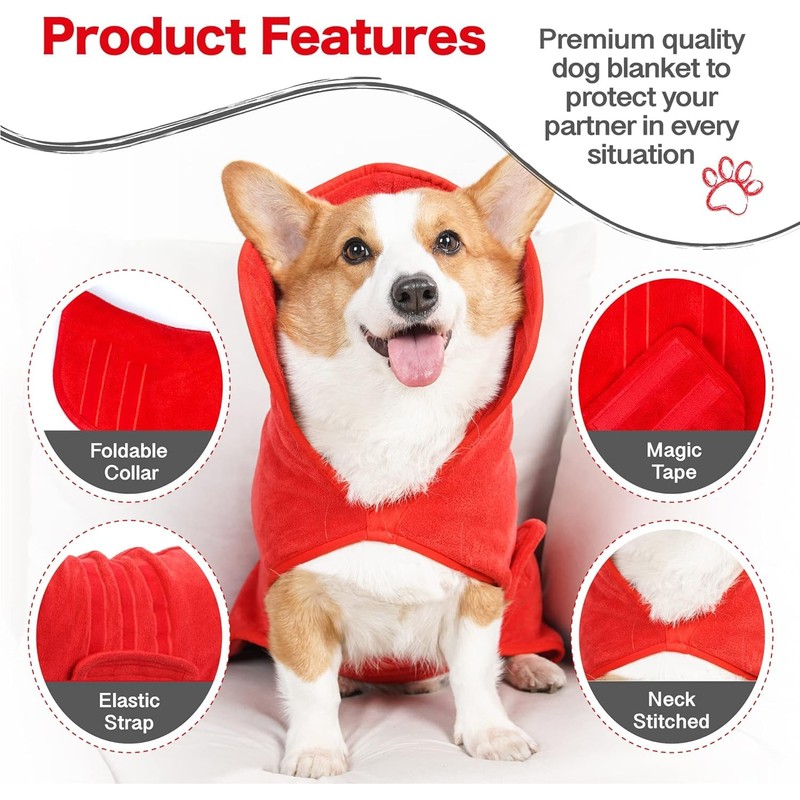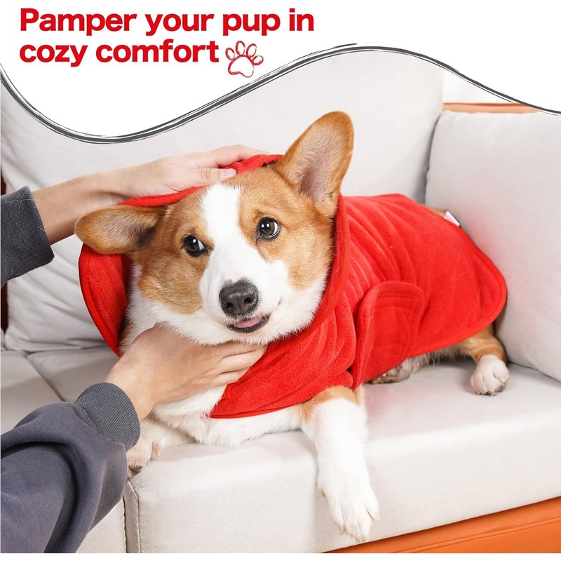 - Super Soft Material: 400 GSM red dog drying robe has a soft and absorbent microfiber fabric. A dog drying bag absorbs more water than a towel & allows your pet to dry off faster after a wash without getting chills or colds; ideal for indoor & outdoor uses