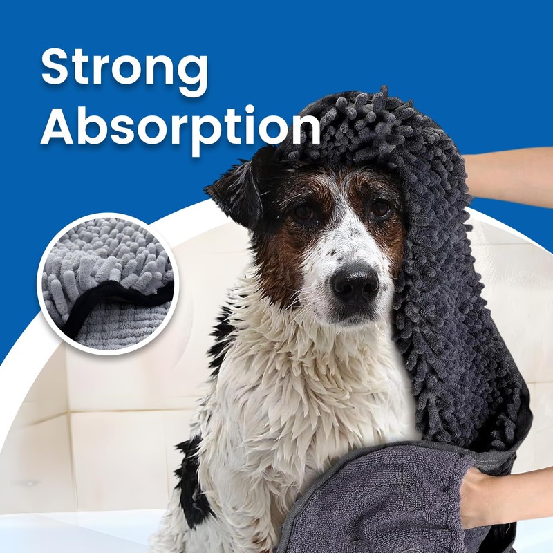 - 🐾 Super Absorbent Dog Towel Made from premium microfibre, this dog towel absorbs water in seconds, making bath time or rainy walks less messy. No more dripping wet floors – just a clean, dry pup ready to cuddle up.