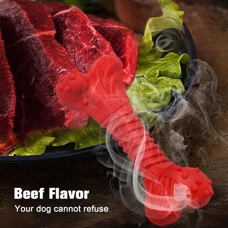 • 【Beef Flavor】Aggressive Chewers Dog Toys for Large Dogs use only 100% real food ingredients for flavor and scent. This beef flavor attracts dogs to chew the toy repeatedly and keep them playing all the time.