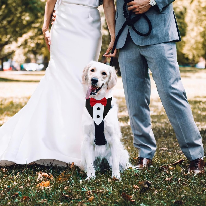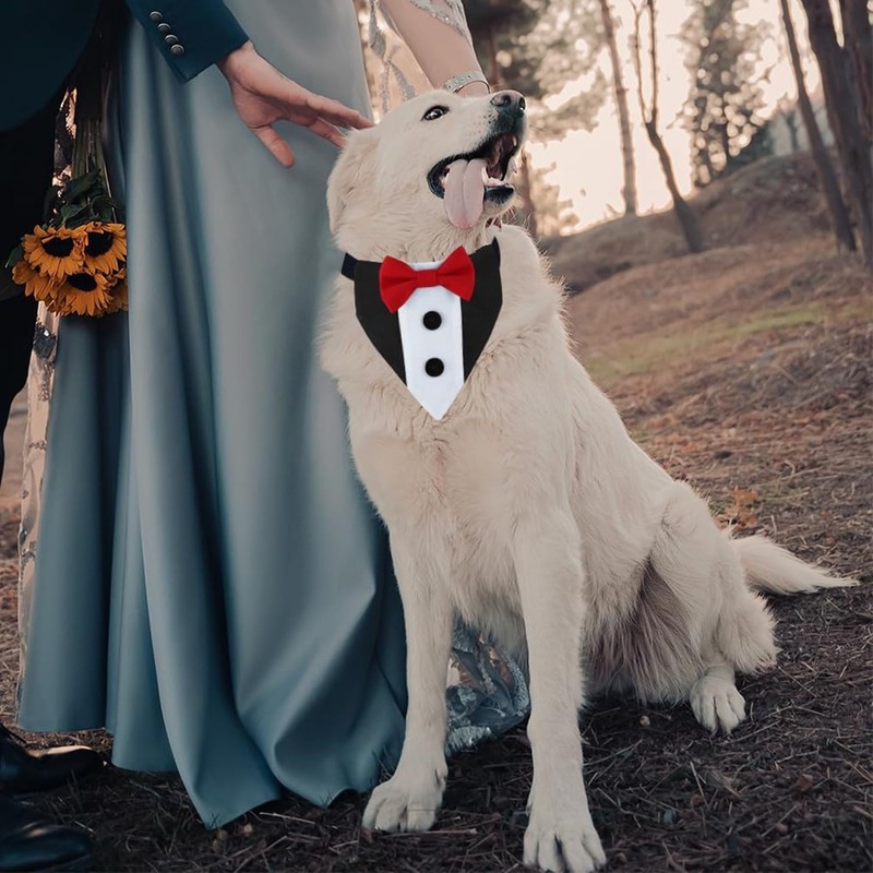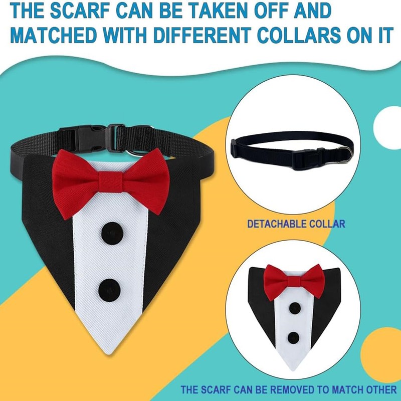 Dog Tuxedo,Formal Wedding Dog Bandana Adjustable Collar with Bowtie,Detachabl...