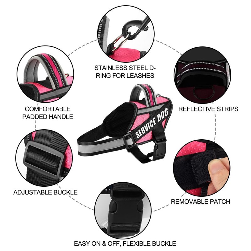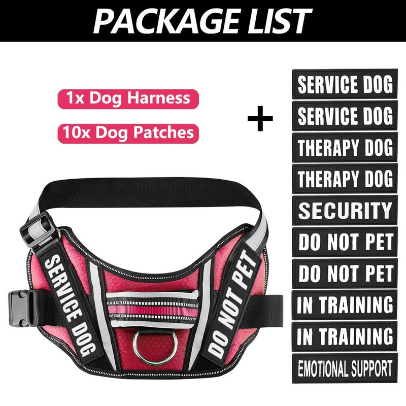 - 【WHAT WILL YOU GET】Get ready to enjoy our package, which includes a service dog harness and 10 vibrant dog patches such as "DO NOT PET," "IN TRAINING," "SECURITY," "THERAPY DOG," "SERVICE DOG," and "EMOTIONAL SUPPORT." You can attach up to 2 patches at once to reflect your dog's mood, personality, or display crucial information on your harness.