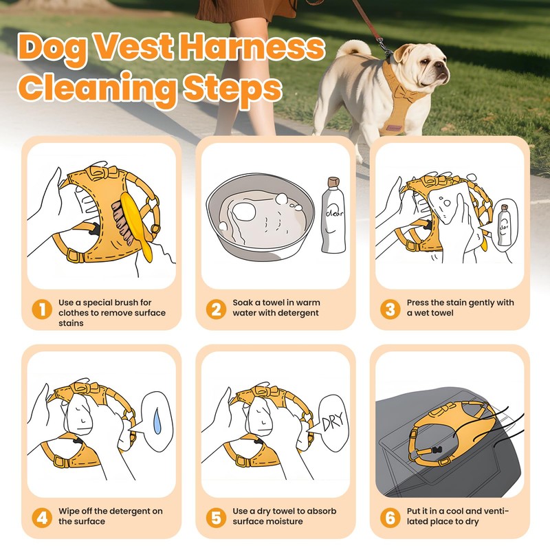 - 【Easy On and Off】This dog harness is designed for convenience and simplicity. With just 3 easy steps, you can effortlessly put it on and take it off your puppy. Simply have your furry friend step into the harness, buckle it up, and attach the leash. It's that easy!