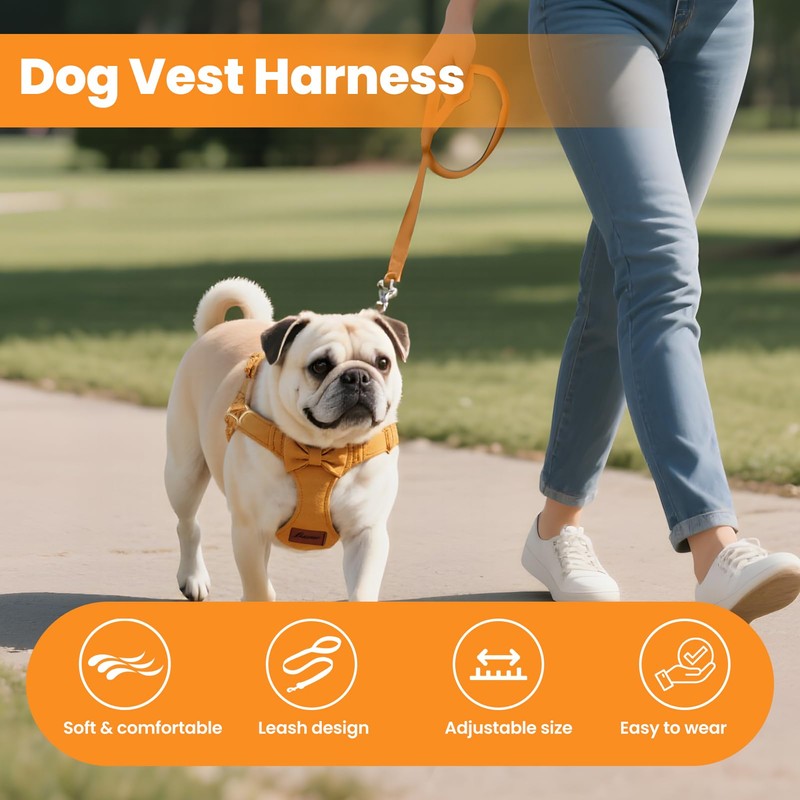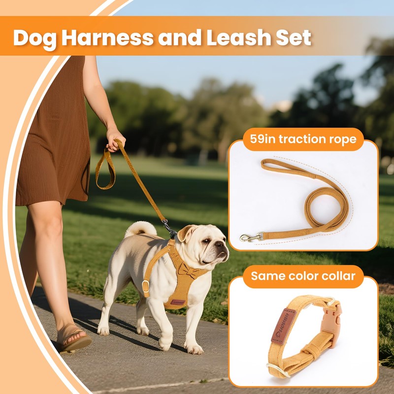 Dog Vest Harness, Dog Harness and Leash Set, Adjustable Comfort Buckle Pet Vest Harness with 4.9ft Leash for Walking Training (Fallen Leaf Yellow, S)