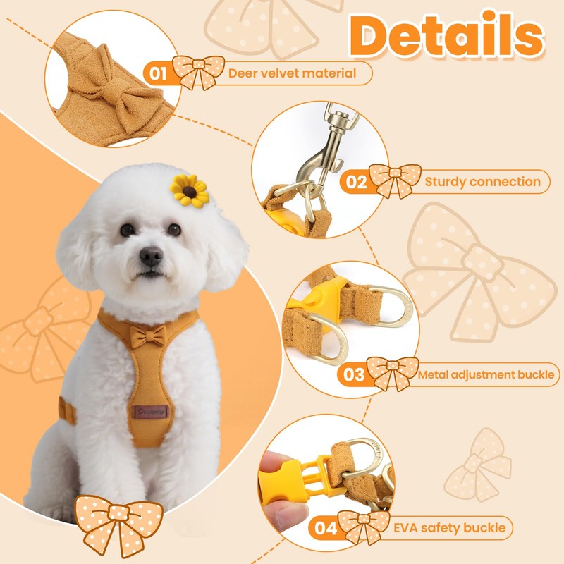 - 【Comfortable Fabric】The dog harness collar leash set is made from imitation deerskin velvet material, offering a soft, skin friendly fit that enhances your pet's comfort during wear.