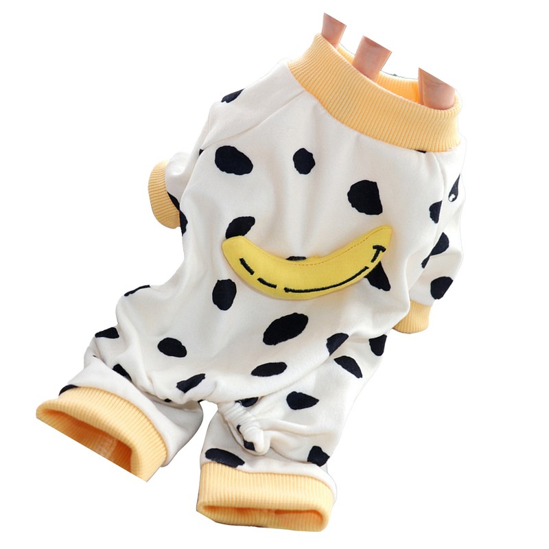 Dog Winter Clothes Fashionable Cute 4 Legged Warm Comfortable Soft Washable Puppy Pajamas for Indoor Three Dimensional Banana M