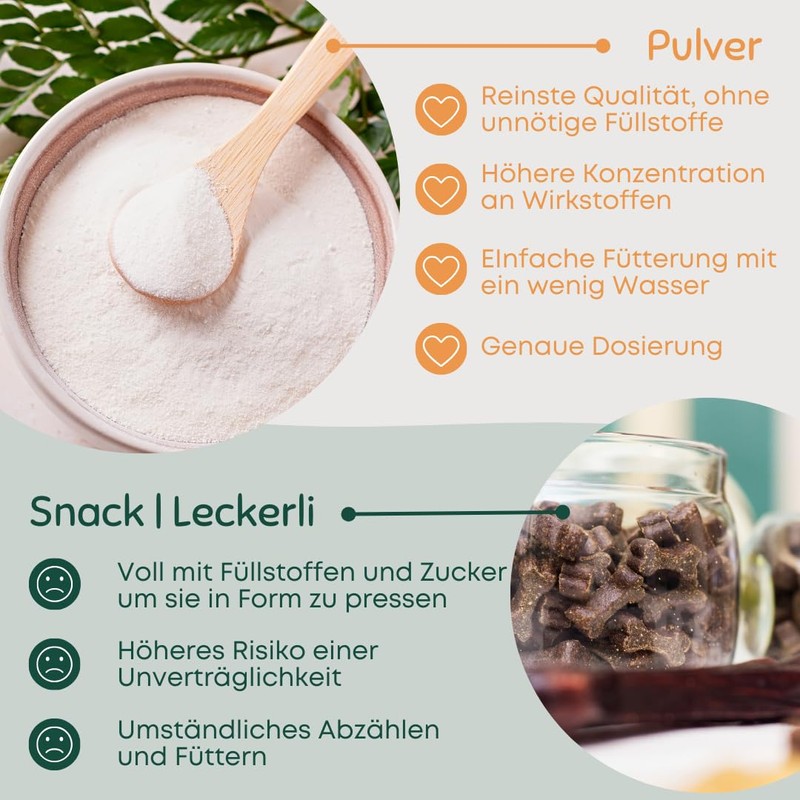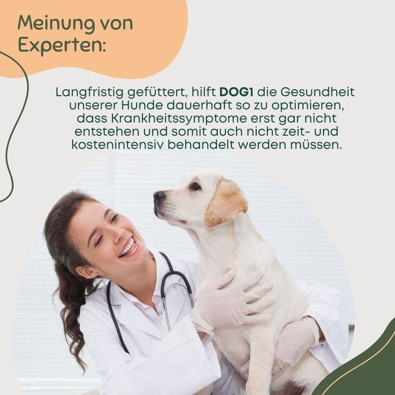 • Quality made in Germany – for the well-being of your dog: DOG1 is proud to be a German quality product developed with the utmost care and love. Our high-quality dog supplements, such as joint tablets and superfood ingredients, are designed to improve the quality of life of your dog and promote a long, happy and active life. Rely on DOG1 - because your dog deserves the best.