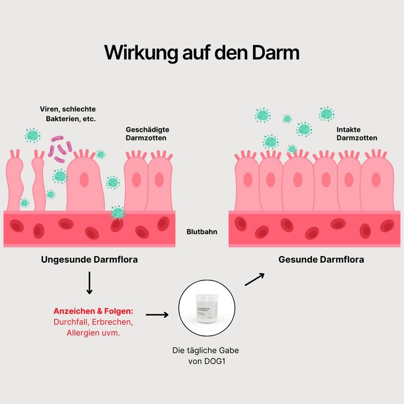 • Put an end to constant gastrointestinal problems and support your dog with a concentrated intestinal restoration.