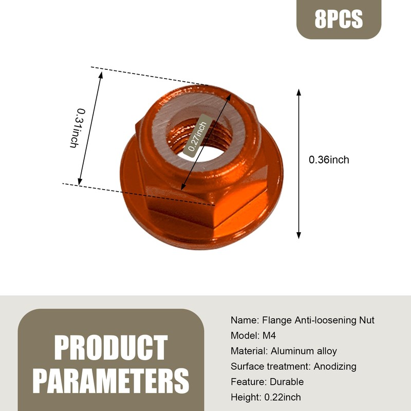 - Features: It comes with a standard hexagonal flange + nylon elastic ring, which is not easy to fall off, and improves the durability of the aluminum alloy nut.