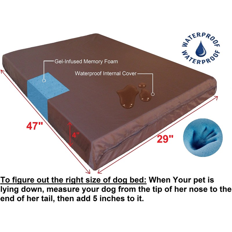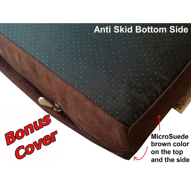 - WATERPROOF LINER + 2 EXTERNAL COVERS - This bed comes with x1 Water proof internal zipper cover to protect the memory foam, x1 Heavy Duty washable Chocolate Brown Denim external zipper cover + x1 Free bonus Micro-Suede brown external case and x1 Gel Infused XL memory foam pad.