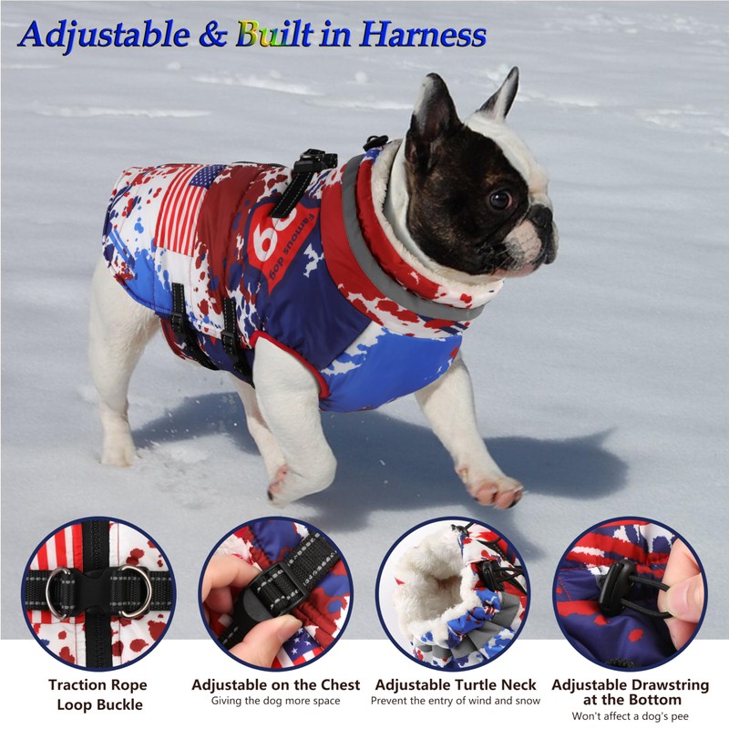 Dogcheer American Flag Jacket with Harness - Adjustable Waterproof Dog Coat, Fleece Jacket Snowsuit for Small, Medium, Large Dogs - US Flag 3XL
