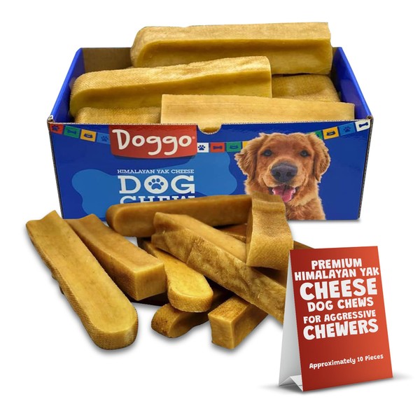Doggo Dog Chew - Premium Yak Cheese Himalayan Dog Chews - Natural Yak Chews for Large and Small Dogs - Yak Milk Dog Chew - Long-Lasting Treats Aggressive Chewers - Large, 2 Pounds (10 Pieces)