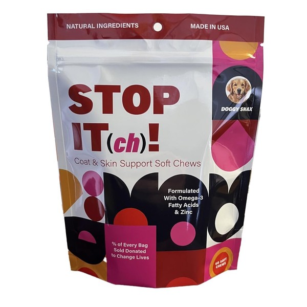 Doggy Snax Stop It! Skin and Coat Supplement with Omega-3, EPA and DHA, and Other Ingredients scientifically Proven to Encourage Healthy Skin and a Shiny Coat. May Reduce itching and Scratching.