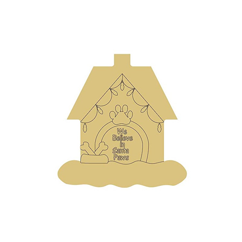 Doghouse Design by Lines Cutout Holidays Christmas Door Hanger Unfinished Wood MDF Shape Canvas Style 2 Art 1 (24")