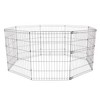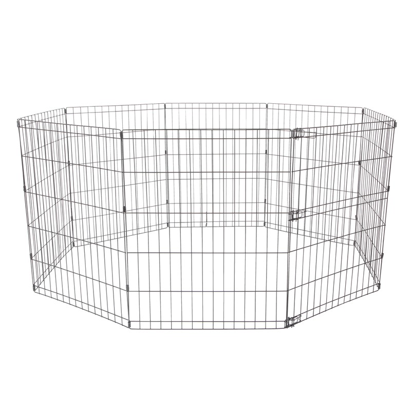 The Dogit Playpen provides a practical and convenient way to quickly set up a secure and enclosed play area for your pet. This versatile product has many uses. It can be used a playpen, training pen, or portable exercise yard. It can also be assembled as a totally enclosed cage, in several different sizes. Made of safe and sturdy epoxy-coated steel wiring, this playpen is built to last, whether it's used indoors or outdoors. The door provides easy access and has 3 secure latches. The playpen folds flat easily for storage and can be assembled quickly without tools.