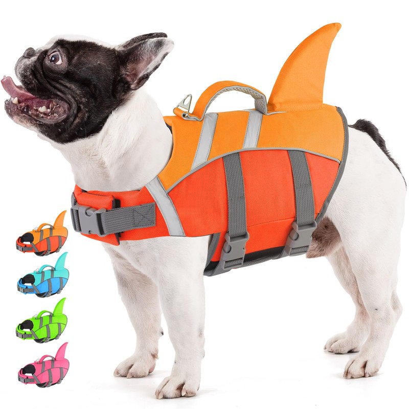 - [CUTE AND STYLISH SHARK FIN]: Doglay dog life jackets feature a shark fin design for a cute and fun look and are filled with high buoyancy and lightweight EPE Pearl Cotton with low water absorption, providing safety while ensuring style and making your dog one of the brightest stars in the water